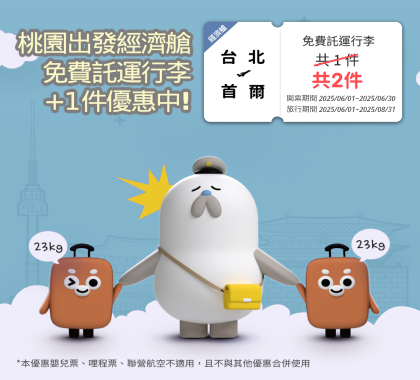 ★提供項目 :託運行李多1件(23公斤以內 ,每件長寬高總和不能超過158公分)其他行李相關規定請參照本公司官網